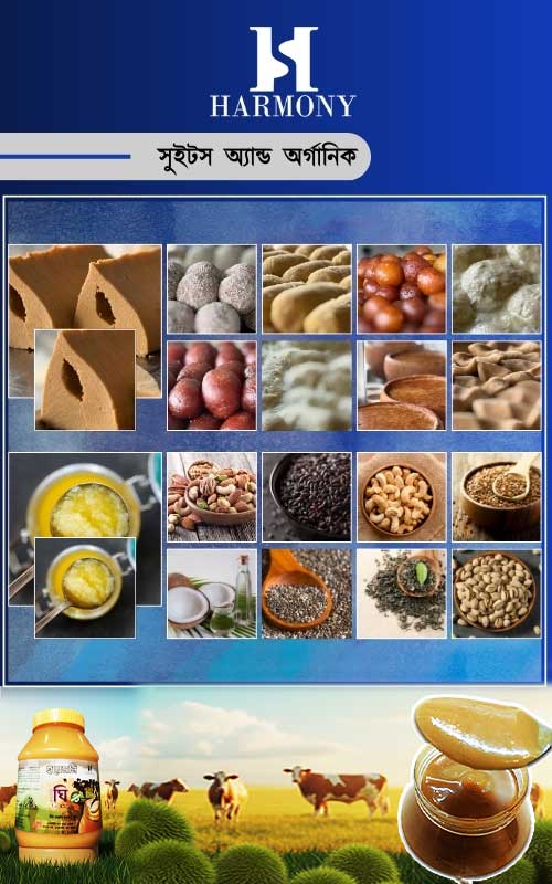 প্রাতিষ্ঠানিক বা পারিবারিক আয়োজনে হারমনি সুইটস অ্যান্ড অর্গানিক পণ্য গ্রাহকের প্রথম পছন্দ। আমাদের মিষ্টি জাতীয় পণ্যসহ সব পণ্যে শতভাগ মান সম্পন্ন। নির্দিষ্ট সময়ে পণ্য ডেলিভারিতে আমরা যত্নশীল।